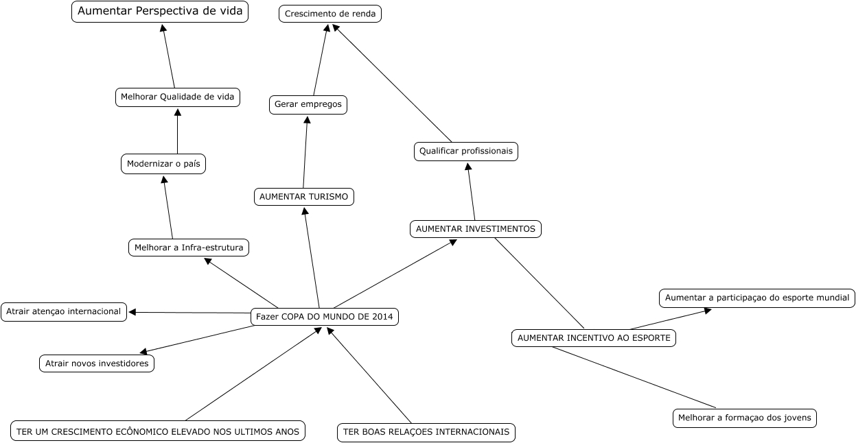 Esse mapa conceitual, produzido no IHMC CmapTools, tem a informação relacionada a: T4 - Mapa cognitivo, TER BOAS RELAÇOES INTERNACIONAIS ???? Fazer COPA DO MUNDO DE 2014, Melhorar Qualidade de vida ???? Aumentar Perspectiva de vida, Qualificar profissionais ???? Crescimento de renda, AUMENTAR TURISMO ???? Gerar empregos, AUMENTAR INCENTIVO AO ESPORTE ???? Melhorar a formaçao dos jovens, Fazer COPA DO MUNDO DE 2014 ???? Melhorar a Infra-estrutura, AUMENTAR INCENTIVO AO ESPORTE ???? Aumentar a participaçao do esporte mundial, AUMENTAR INVESTIMENTOS ???? Qualificar profissionais, Fazer COPA DO MUNDO DE 2014 Atrair atençao internacional, Modernizar o país ... Melhorar Qualidade de vida, AUMENTAR INVESTIMENTOS ???? AUMENTAR INCENTIVO AO ESPORTE, Fazer COPA DO MUNDO DE 2014 ???? AUMENTAR INVESTIMENTOS, Fazer COPA DO MUNDO DE 2014 ???? AUMENTAR TURISMO, Melhorar a Infra-estrutura ???? Modernizar o país, Gerar empregos ???? Crescimento de renda, Fazer COPA DO MUNDO DE 2014 ???? Atrair novos investidores, TER UM CRESCIMENTO ECÔNOMICO ELEVADO NOS ULTIMOS ANOS ???? Fazer COPA DO MUNDO DE 2014