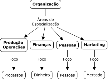 Esse mapa conceitual, produzido no IHMC CmapTools, tem a informação relacionada a: administracao-areas funcionais, Finanças Foco Dinheiro, Pessoas Foco Pessoas, Produção Operações Foco Processos, Organização Áreas de Especialização Finanças, Marketing Foco Mercado, Organização Áreas de Especialização Marketing, Organização Áreas de Especialização Pessoas, Organização Áreas de Especialização Produção Operações