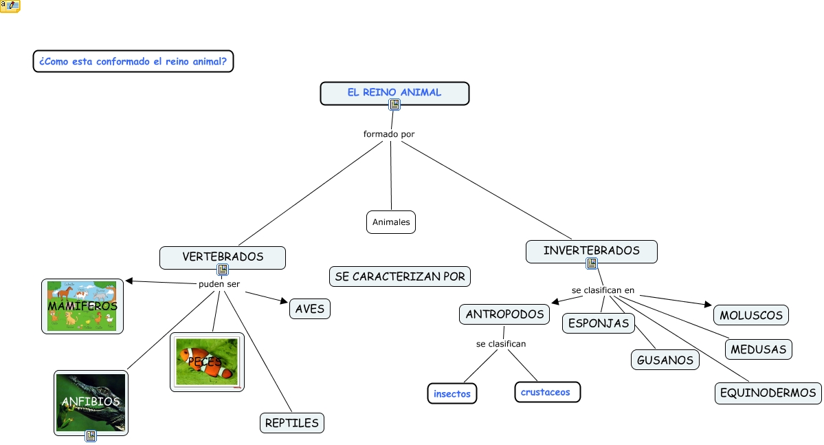 Este Cmap, tiene información relacionada con: CLASIFICACION DE LOS ANIMALES, VERTEBRADOS puden ser REPTILES, ANTROPODOS se clasifican crustaceos, VERTEBRADOS puden ser ANFIBIOS, INVERTEBRADOS se clasifican en MOLUSCOS, EL REINO ANIMAL formado por INVERTEBRADOS, VERTEBRADOS puden ser PECES, ANTROPODOS se clasifican insectos, EL REINO ANIMAL formado por VERTEBRADOS, INVERTEBRADOS se clasifican en MEDUSAS, VERTEBRADOS puden ser AVES, INVERTEBRADOS se clasifican en ANTROPODOS, EL REINO ANIMAL formado por Animales, INVERTEBRADOS se clasifican en EQUINODERMOS, INVERTEBRADOS se clasifican en ESPONJAS, INVERTEBRADOS se clasifican en GUSANOS, VERTEBRADOS puden ser MAMIFEROS