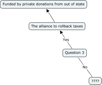 This Concept Map, created with IHMC CmapTools, has information related to: Group C Question 3, The alliance to rollback taxes Funded by private donations from out of state, Question 3 Yes The alliance to rollback taxes, Question 3 No ????