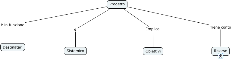 Questa Cmap, creata con IHMC CmapTools, contiene informazioni relative a: Progetto, Progetto Tiene conto Risorse, Progetto è in funzione Destinatari, Progetto è Sistemico, Progetto Implica Obiettivi
