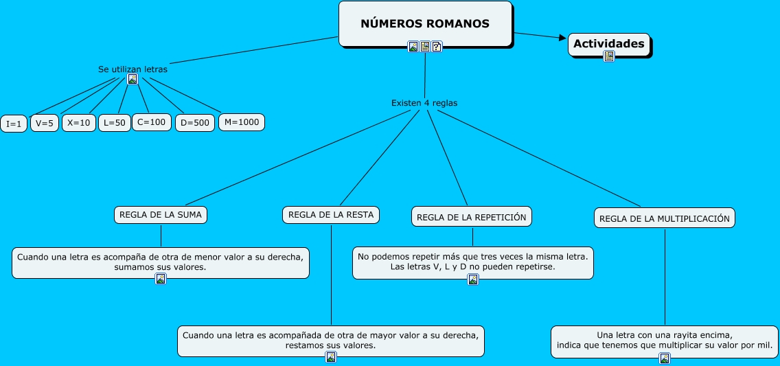 Este Cmap, tiene información relacionada con: NUMEROS ROMANOS, NÚMEROS ROMANOS Se utilizan letras V=5, REGLA DE LA RESTA Cuando una letra es acompañada de otra de mayor valor a su derecha, restamos sus valores., NÚMEROS ROMANOS Se utilizan letras C=100, REGLA DE LA SUMA Cuando una letra es acompaña de otra de menor valor a su derecha, sumamos sus valores., NÚMEROS ROMANOS Se utilizan letras L=50, NÚMEROS ROMANOS Existen 4 reglas REGLA DE LA MULTIPLICACIÓN, NÚMEROS ROMANOS Existen 4 reglas REGLA DE LA RESTA, NÚMEROS ROMANOS Se utilizan letras I=1, NÚMEROS ROMANOS Existen 4 reglas REGLA DE LA REPETICIÓN, REGLA DE LA MULTIPLICACIÓN Una letra con una rayita encima, indica que tenemos que multiplicar su valor por mil., NÚMEROS ROMANOS Se utilizan letras M=1000, NÚMEROS ROMANOS Se utilizan letras X=10, NÚMEROS ROMANOS Actividades, REGLA DE LA REPETICIÓN No podemos repetir más que tres veces la misma letra. Las letras V, L y D no pueden repetirse., NÚMEROS ROMANOS Existen 4 reglas REGLA DE LA SUMA, NÚMEROS ROMANOS Se utilizan letras D=500
