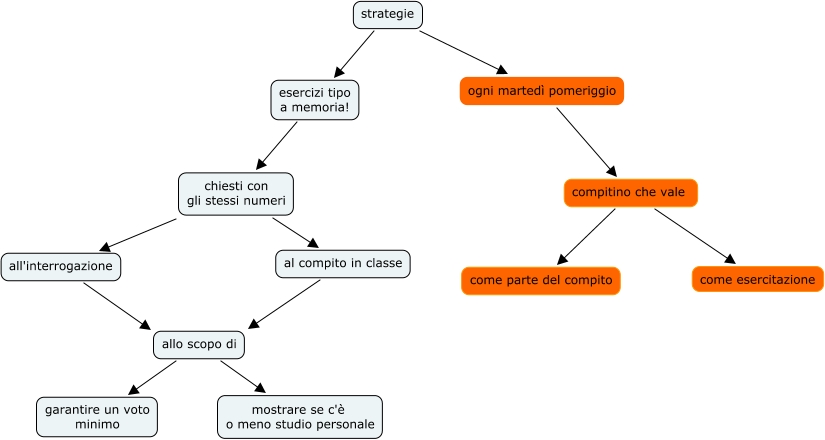 Questa Cmap, creata con IHMC CmapTools, contiene informazioni relative a: strategie, allo scopo di garantire un voto minimo, chiesti con gli stessi numeri al compito in classe, al compito in classe allo scopo di, strategie esercizi tipo a memoria!, esercizi tipo a memoria! chiesti con gli stessi numeri, strategie ogni martedì pomeriggio, allo scopo di mostrare se c'è o meno studio personale, compitino che vale come parte del compito, ogni martedì pomeriggio compitino che vale, all'interrogazione allo scopo di, compitino che vale come esercitazione, chiesti con gli stessi numeri all'interrogazione
