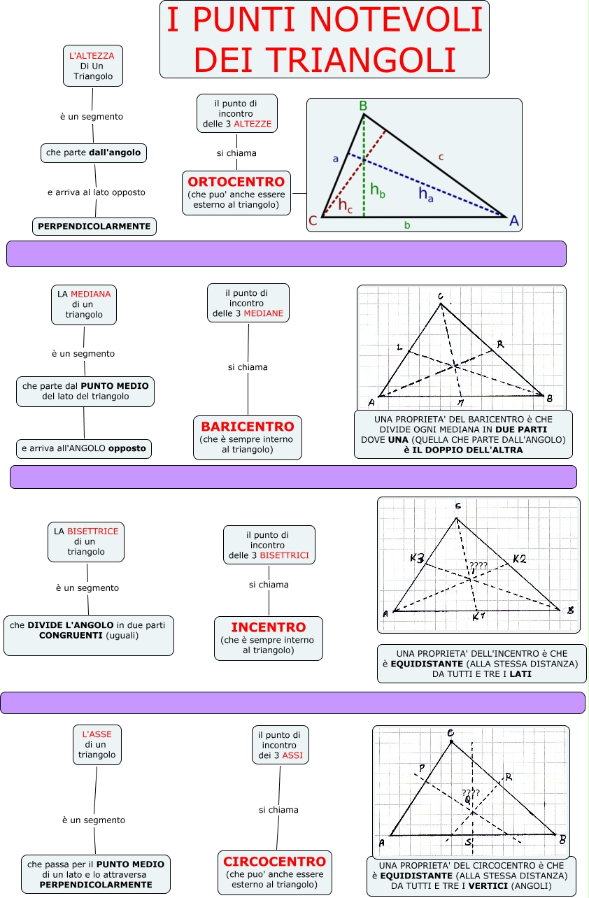 Questa Cmap, creata con IHMC CmapTools, contiene informazioni relative a: geometria - i triangoli - proprieta', LA MEDIANA di un triangolo è un segmento che parte dal PUNTO MEDIO del lato del triangolo, L'ASSE di un triangolo è un segmento che passa per il PUNTO MEDIO di un lato e lo attraversa PERPENDICOLARMENTE, il punto di incontro delle 3 BISETTRICI si chiama INCENTRO (che è sempre interno al triangolo), e arriva all'ANGOLO opposto ???? che parte dal PUNTO MEDIO del lato del triangolo, ORTOCENTRO (che puo' anche essere esterno al triangolo) ????, che parte dall'angolo e arriva al lato opposto PERPENDICOLARMENTE, LA BISETTRICE di un triangolo è un segmento che DIVIDE L'ANGOLO in due parti CONGRUENTI (uguali), L'ALTEZZA Di Un Triangolo è un segmento che parte dall'angolo, il punto di incontro delle 3 ALTEZZE si chiama ORTOCENTRO (che puo' anche essere esterno al triangolo), il punto di incontro dei 3 ASSI si chiama CIRCOCENTRO (che puo' anche essere esterno al triangolo), il punto di incontro delle 3 MEDIANE si chiama BARICENTRO (che è sempre interno al triangolo)