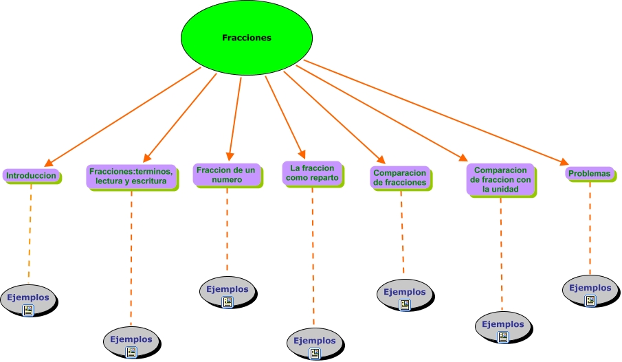 Este Cmap, tiene información relacionada con: fracciones, Fracciones Fraccion de un numero Ejemplos, Fracciones Comparacion de fraccion con la unidad Ejemplos, Fracciones Introduccion Ejemplos, Fracciones La fraccion como reparto Ejemplos, Fracciones Fracciones:terminos, lectura y escritura Ejemplos, Fracciones Problemas Ejemplos, Fracciones Comparacion de fracciones Ejemplos
