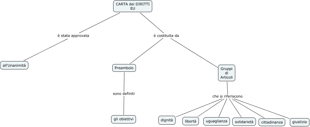Questa Cmap, creata con IHMC CmapTools, contiene informazioni relative a: Carta DirittiEU_guida, CARTA dei DIRITTI EU è costituita da Preambolo, Preambolo sono definiti gli obiettivi, Gruppi di Articoli che si riferiscono uguaglianza, Gruppi di Articoli che si riferiscono solidarietà, Gruppi di Articoli che si riferiscono dignità, Gruppi di Articoli che si riferiscono libertà, CARTA dei DIRITTI EU è costituita da Gruppi di Articoli, Gruppi di Articoli che si riferiscono giustizia, CARTA dei DIRITTI EU è stata approvata all'Unanimità, Gruppi di Articoli che si riferiscono cittadinanza