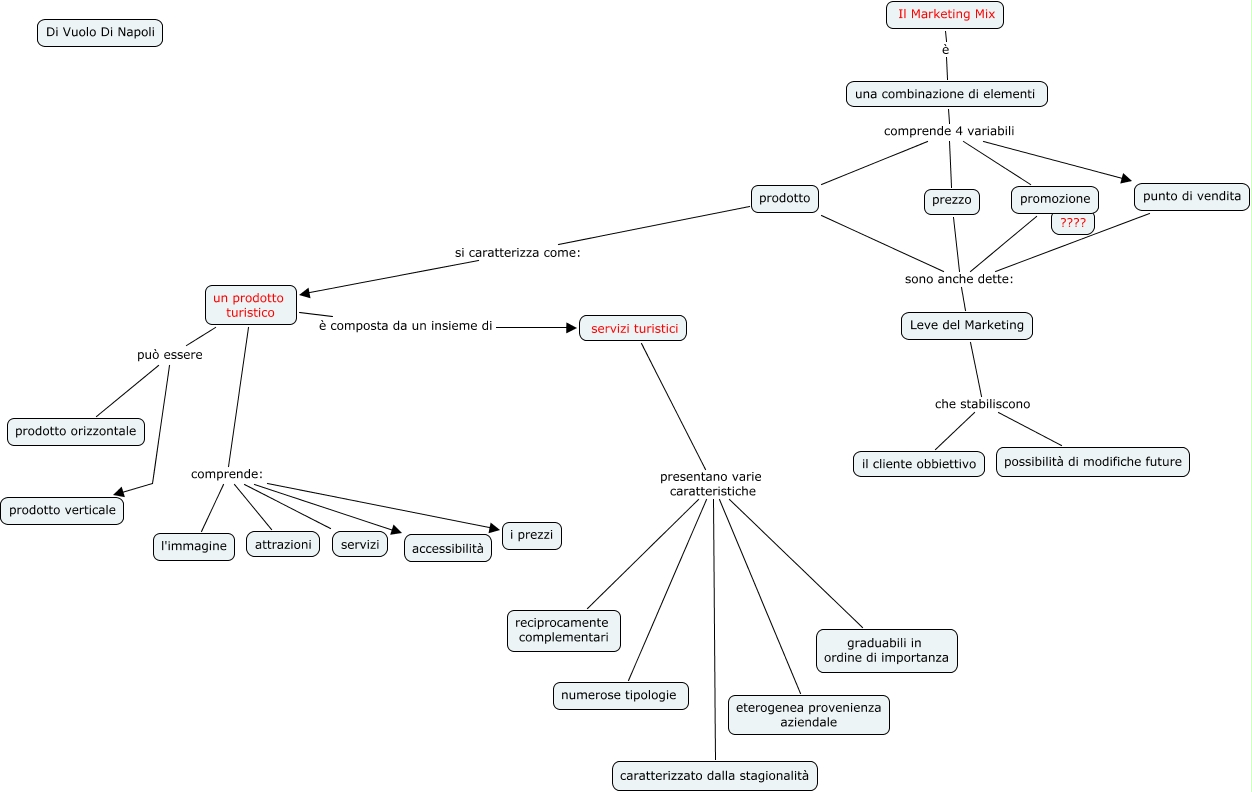 Questa Cmap, creata con IHMC CmapTools, contiene informazioni relative a: Marketing turistico-DiVuolo-Di Napoli4Bl, un prodotto turistico è composta da un insieme di servizi turistici, una combinazione di elementi comprende 4 variabili prezzo, prezzo sono anche dette: Leve del Marketing, un prodotto turistico può essere prodotto verticale, servizi turistici presentano varie caratteristiche eterogenea provenienza aziendale, un prodotto turistico comprende: l'immagine, una combinazione di elementi comprende 4 variabili promozione, punto di vendita sono anche dette: Leve del Marketing, Leve del Marketing che stabiliscono il cliente obbiettivo, un prodotto turistico comprende: i prezzi, un prodotto turistico comprende: accessibilità, un prodotto turistico comprende: attrazioni, prodotto si caratterizza come: un prodotto turistico, una combinazione di elementi comprende 4 variabili prodotto, servizi turistici presentano varie caratteristiche reciprocamente complementari, un prodotto turistico comprende: servizi, una combinazione di elementi comprende 4 variabili punto di vendita, servizi turistici presentano varie caratteristiche graduabili in ordine di importanza, prodotto sono anche dette: Leve del Marketing, un prodotto turistico può essere prodotto orizzontale