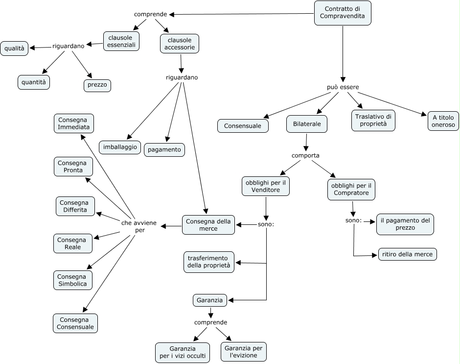 Questa Cmap, creata con IHMC CmapTools, contiene informazioni relative a: compravendita salice e parisi-4bl, clausole essenziali riguardano quantità, obblighi per il Venditore sono: trasferimento della proprietà, Consegna della merce che avviene per Consegna Pronta, Contratto di Compravendita può essere Bilaterale, Consegna della merce che avviene per Consegna Differita, Garanzia comprende Garanzia per i vizi occulti, Bilaterale comporta obblighi per il Venditore, obblighi per il Compratore sono: ritiro della merce, Contratto di Compravendita può essere A titolo oneroso, obblighi per il Venditore sono: Garanzia, Contratto di Compravendita può essere Traslativo di proprietà, clausole accessorie riguardano pagamento, Consegna della merce che avviene per Consegna Reale, Consegna della merce che avviene per Consegna Immediata, Contratto di Compravendita può essere Consensuale, clausole essenziali riguardano prezzo, clausole accessorie riguardano imballaggio, Bilaterale comporta obblighi per il Compratore, clausole essenziali riguardano qualità, Contratto di Compravendita comprende clausole accessorie