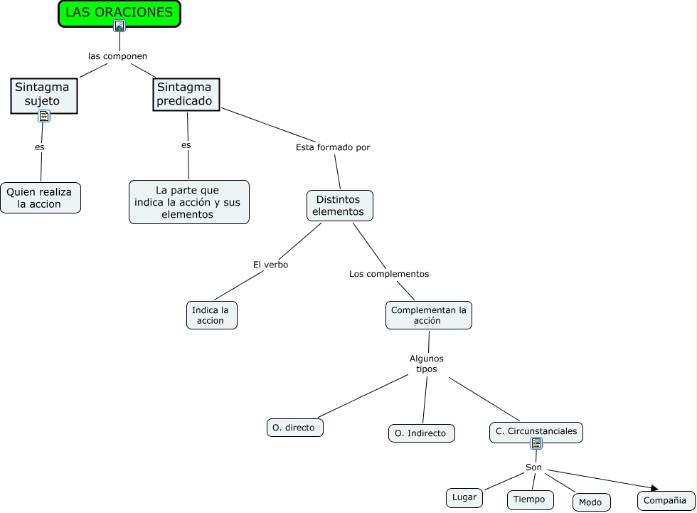 Este Cmap, tiene información relacionada con: Partes de una oracion
