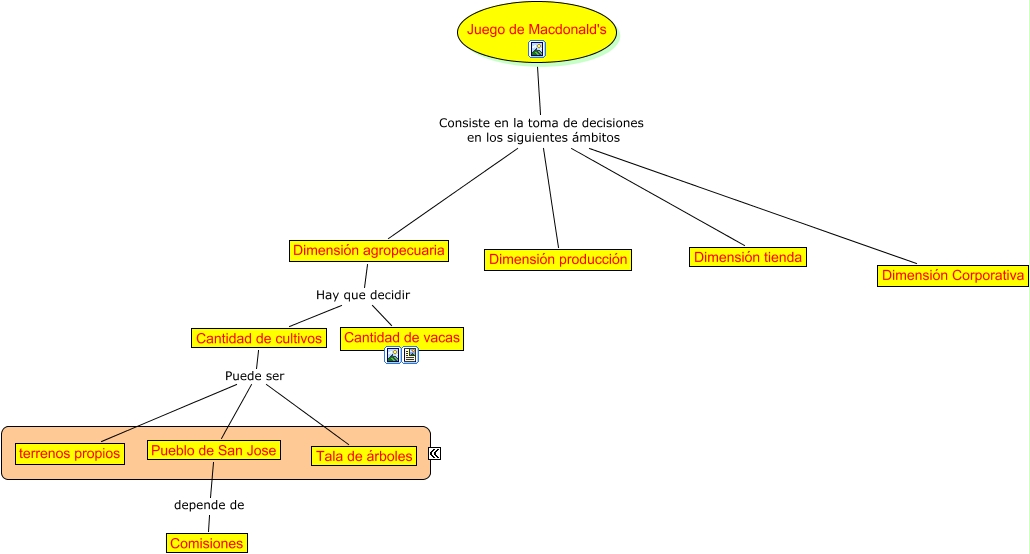 Este Cmap, tiene información relacionada con: Juego de Mcdonalds Javier Riesco, Dimensión agropecuaria Hay que decidir Cantidad de vacas, Cantidad de cultivos Puede ser terrenos propios, Juego de Macdonald's Consiste en la toma de decisiones en los siguientes ámbitos Dimensión producción, Juego de Macdonald's Consiste en la toma de decisiones en los siguientes ámbitos Dimensión tienda, Juego de Macdonald's Consiste en la toma de decisiones en los siguientes ámbitos Dimensión agropecuaria, Pueblo de San Jose depende de Comisiones, Cantidad de cultivos Puede ser Pueblo de San Jose, Dimensión agropecuaria Hay que decidir Cantidad de cultivos, Juego de Macdonald's Consiste en la toma de decisiones en los siguientes ámbitos Dimensión Corporativa, Cantidad de cultivos Puede ser Tala de árboles