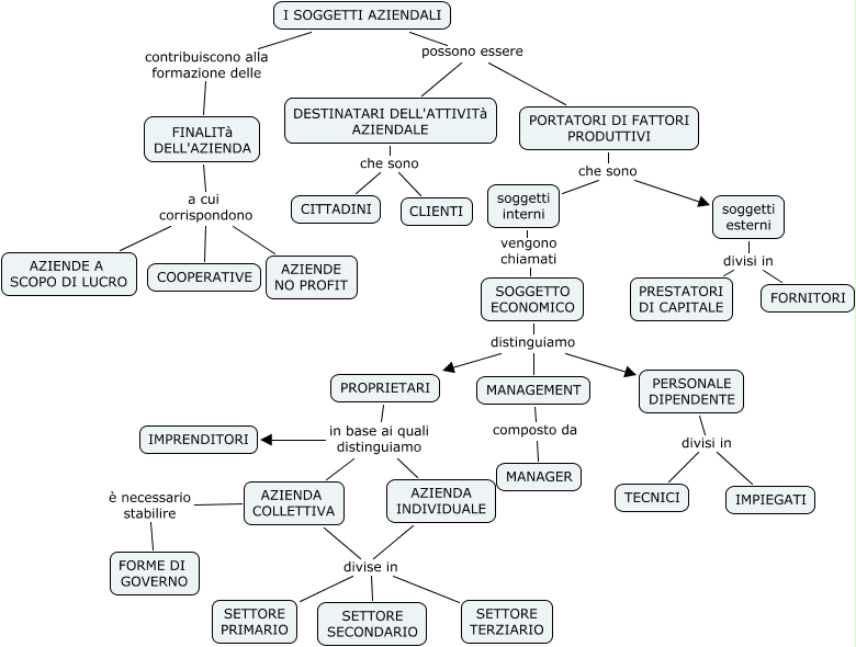 Questa Cmap, creata con IHMC CmapTools, contiene informazioni relative a: soggetti aziendali arzeni-persico, AZIENDA COLLETTIVA è necessario stabilire FORME DI GOVERNO, FINALITà DELL'AZIENDA a cui corrispondono AZIENDE A SCOPO DI LUCRO, DESTINATARI DELL'ATTIVITà AZIENDALE che sono CITTADINI, DESTINATARI DELL'ATTIVITà AZIENDALE che sono CLIENTI, AZIENDA INDIVIDUALE divise in SETTORE PRIMARIO, soggetti interni vengono chiamati SOGGETTO ECONOMICO, PROPRIETARI in base ai quali distinguiamo AZIENDA COLLETTIVA, MANAGEMENT composto da MANAGER, PORTATORI DI FATTORI PRODUTTIVI che sono soggetti esterni, I SOGGETTI AZIENDALI possono essere PORTATORI DI FATTORI PRODUTTIVI, PROPRIETARI in base ai quali distinguiamo IMPRENDITORI, SOGGETTO ECONOMICO distinguiamo PROPRIETARI, AZIENDA COLLETTIVA divise in SETTORE SECONDARIO, FINALITà DELL'AZIENDA a cui corrispondono COOPERATIVE, PERSONALE DIPENDENTE divisi in TECNICI, AZIENDA COLLETTIVA divise in SETTORE PRIMARIO, FINALITà DELL'AZIENDA a cui corrispondono AZIENDE NO PROFIT, soggetti interni che sono soggetti esterni, PERSONALE DIPENDENTE divisi in IMPIEGATI, soggetti esterni divisi in PRESTATORI DI CAPITALE