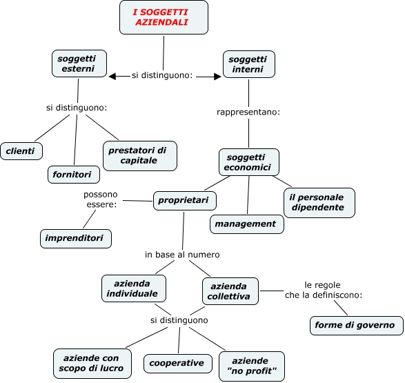 Questa Cmap, creata con IHMC CmapTools, contiene informazioni relative a: soggetti aziendali_salvati trimarco 4bl, azienda individuale si distinguono aziende con scopo di lucro, soggetti economici ???? il personale dipendente, azienda collettiva si distinguono aziende "no profit", proprietari possono essere: imprenditori, azienda individuale si distinguono cooperative, proprietari in base al numero azienda collettiva, I SOGGETTI AZIENDALI si distinguono: soggetti esterni, azienda collettiva le regole che la definiscono: forme di governo, proprietari in base al numero azienda individuale, soggetti economici ???? proprietari, soggetti economici ???? management, soggetti esterni si distinguono: prestatori di capitale, azienda individuale si distinguono aziende "no profit", azienda collettiva si distinguono aziende con scopo di lucro, soggetti interni rappresentano: soggetti economici, soggetti esterni si distinguono: fornitori, I SOGGETTI AZIENDALI si distinguono: soggetti interni, soggetti esterni si distinguono: clienti, azienda collettiva si distinguono cooperative