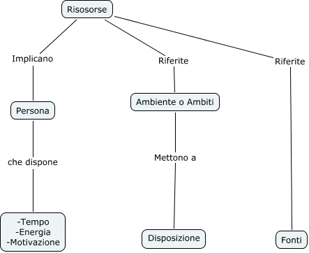 Questa Cmap, creata con IHMC CmapTools, contiene informazioni relative a: risorse, Risosorse Implicano Persona, Risosorse Riferite Fonti, Persona che dispone -Tempo -Energia -Motivazione, Risosorse Riferite Ambiente o Ambiti, Ambiente o Ambiti Mettono a Disposizione