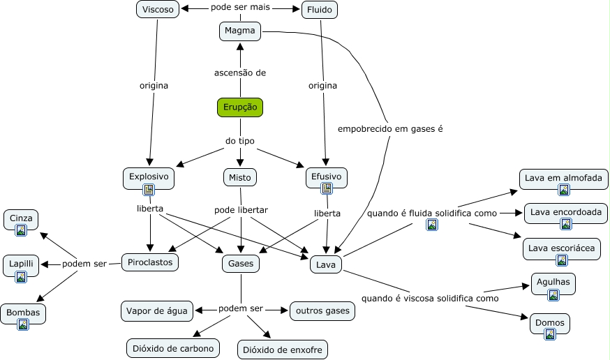 This Concept Map, created with IHMC CmapTools, has information related to: Vulcanismo Isabel Alte da Veiga, Erupção do tipo Efusivo, Efusivo liberta Lava, Misto pode libertar Lava, Piroclastos podem ser Lapilli, Lava quando é viscosa solidifica como Agulhas, Gases podem ser outros gases, Lava quando é fluida solidifica como Lava em almofada, Piroclastos podem ser Bombas, Misto pode libertar Piroclastos, Efusivo liberta Gases, Misto pode libertar Gases, Lava quando é fluida solidifica como Lava escoriácea, Erupção do tipo Explosivo, Explosivo liberta Gases, Magma empobrecido em gases é Lava, Gases podem ser Dióxido de enxofre, Erupção ascensão de Magma, Explosivo liberta Lava, Erupção do tipo Misto, Explosivo liberta Piroclastos