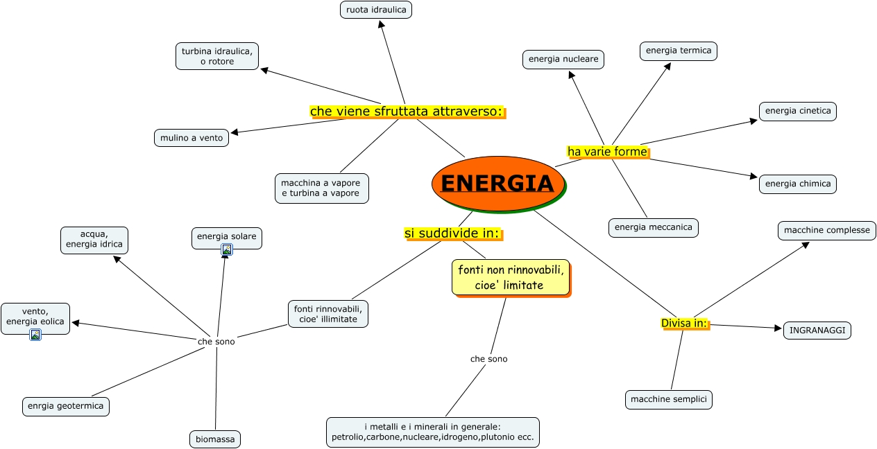 Questa Cmap, creata con IHMC CmapTools, contiene informazioni relative a: 3f mappa energia gabriele menozzi e antonio grisi.cmap, fonti rinnovabili, cioe' illimitate che sono vento, energia eolica, ENERGIA Divisa in: macchine complesse, ENERGIA che viene sfruttata attraverso: macchina a vapore e turbina a vapore, ENERGIA ha varie forme energia nucleare, ENERGIA si suddivide in: fonti rinnovabili, cioe' illimitate, fonti rinnovabili, cioe' illimitate che sono acqua, energia idrica, fonti rinnovabili, cioe' illimitate che sono biomassa, ENERGIA ha varie forme energia chimica, ENERGIA che viene sfruttata attraverso: turbina idraulica, o rotore, fonti rinnovabili, cioe' illimitate che sono enrgia geotermica, fonti rinnovabili, cioe' illimitate che sono energia solare, ENERGIA si suddivide in: fonti non rinnovabili, cioe' limitate, ENERGIA Divisa in: macchine semplici, ENERGIA che viene sfruttata attraverso: ruota idraulica, ENERGIA che viene sfruttata attraverso: mulino a vento, ENERGIA ha varie forme energia cinetica, fonti non rinnovabili, cioe' limitate che sono i metalli e i minerali in generale: petrolio,carbone,nucleare,idrogeno,plutonio ecc., ENERGIA ha varie forme energia meccanica, ENERGIA Divisa in: INGRANAGGI, ENERGIA ha varie forme energia termica