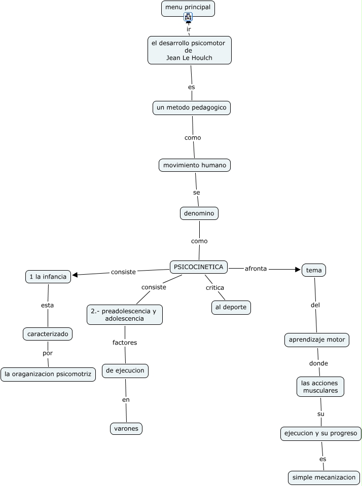 Este Cmap, tiene información relacionada con: cuarto tema, movimiento humano se denomino, las acciones musculares su ejecucion y su progreso, aprendizaje motor donde las acciones musculares, PSICOCINETICA afronta tema, 2.- preadolescencia y adolescencia factores de ejecucion, ejecucion y su progreso es simple mecanizacion, de ejecucion en varones, 1 la infancia esta caracterizado, PSICOCINETICA consiste 1 la infancia, tema del aprendizaje motor, PSICOCINETICA consiste 2.- preadolescencia y adolescencia, el desarrollo psicomotor de Jean Le Houlch ir menu principal, el desarrollo psicomotor de Jean Le Houlch es un metodo pedagogico, un metodo pedagogico como movimiento humano, caracterizado por la oraganizacion psicomotriz, PSICOCINETICA critica al deporte, denomino como PSICOCINETICA