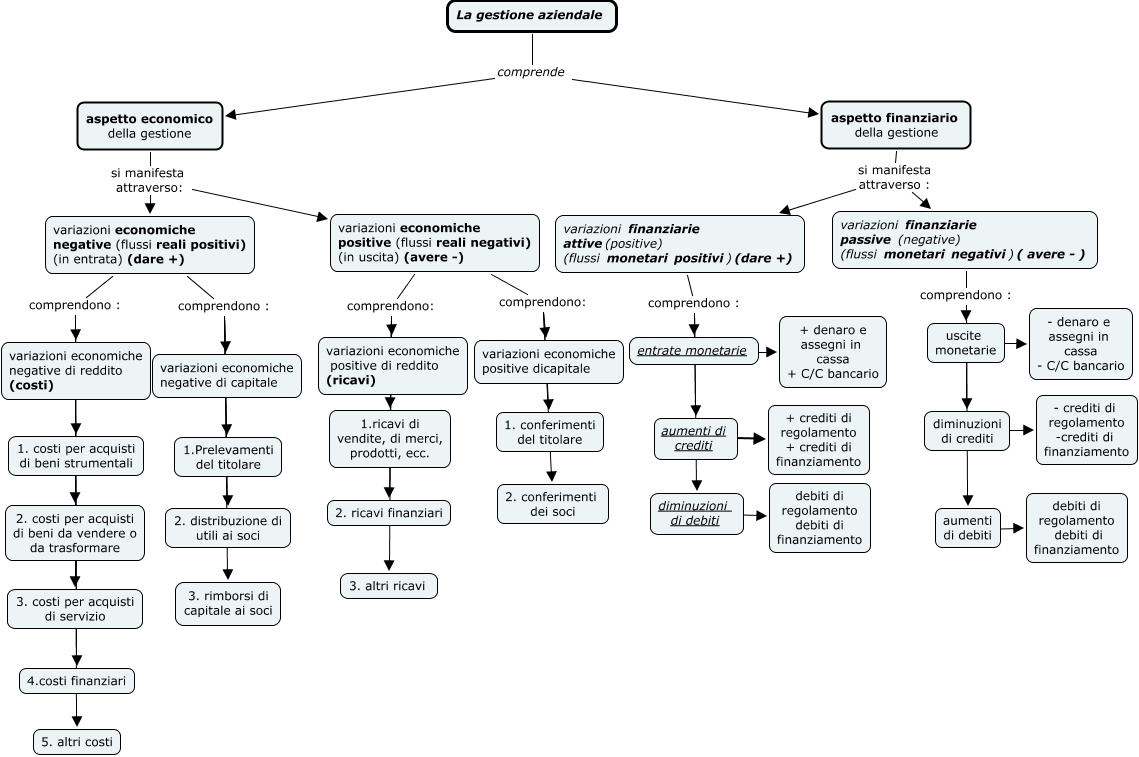 Questa Cmap, creata con IHMC CmapTools, contiene informazioni relative a: aspetti della gestione e variazioni-Prof. G.Ruocco, variazioni finanziarie passive (negative) (flussi monetari negativi)( avere - ) comprendono : uscite monetarie, variazioni economiche negative (flussi reali positivi) (in entrata) (dare +) comprendono : 1. costi per acquisti di beni strumentali, variazioni economiche negative (flussi reali positivi) (in entrata) (dare +) comprendono : 2. distribuzione di utili ai soci, aspetto economico della gestione si manifesta attraverso: variazioni economiche positive (flussi reali negativi) (in uscita) (avere -), variazioni finanziarie passive (negative) (flussi monetari negativi)( avere - ) comprendono : aumenti di debiti, variazioni economiche positive (flussi reali negativi) (in uscita) (avere -) comprendono: 2. conferimenti dei soci, variazioni economiche positive (flussi reali negativi) (in uscita) (avere -) comprendono: variazioni economiche positive dicapitale, variazioni economiche negative (flussi reali positivi) (in entrata) (dare +) comprendono : 5. altri costi, La gestione aziendale comprende aspetto economico della gestione, variazioni economiche negative (flussi reali positivi) (in entrata) (dare +) comprendono : 2. costi per acquisti di beni da vendere o da trasformare, variazioni economiche negative (flussi reali positivi) (in entrata) (dare +) comprendono : 4.costi finanziari, variazioni economiche positive (flussi reali negativi) (in uscita) (avere -) comprendono: 3. altri ricavi, entrate monetarie ???? + denaro e assegni in cassa + C/C bancario, variazioni economiche positive (flussi reali negativi) (in uscita) (avere -) comprendono: 1. conferimenti del titolare, variazioni finanziarie attive(positive) (flussi monetari positivi)(dare +) comprendono : aumenti di crediti, variazioni finanziarie attive(positive) (flussi monetari positivi)(dare +) comprendono : diminuzioni di debiti, variazioni finanziarie attive(positive) (flussi monetari positivi)(dare +) comprendono : entrate monetarie, variazioni economiche negative (flussi reali positivi) (in entrata) (dare +) comprendono : variazioni economiche negative di capitale, variazioni economiche negative (flussi reali positivi) (in entrata) (dare +) comprendono : 3. costi per acquisti di servizio, aumenti di crediti ???? + crediti di regolamento + crediti di finanziamento