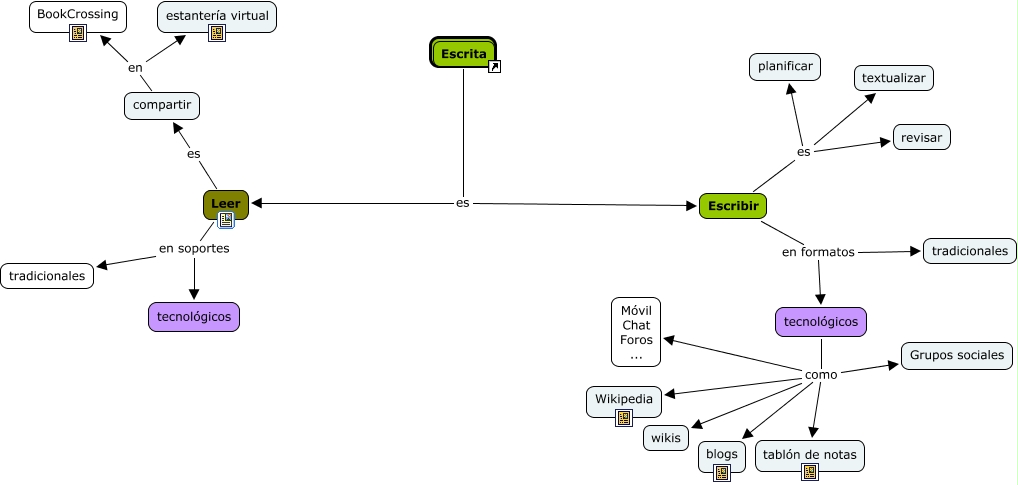 Este Cmap, tiene información relacionada con: CCLinguistica_Escrita, Escribir es planificar, tecnológicos como Grupos sociales, tecnológicos como blogs, tecnológicos como tablón de notas, tecnológicos como wikis, Escribir es textualizar, Escrita es Leer, tecnológicos como Móvil Chat Foros ..., Escribir en formatos tradicionales, Escribir en formatos tecnológicos, Escribir es revisar, Leer en soportes tecnológicos, Leer en soportes tradicionales, compartir en estantería virtual, Escrita es Escribir, compartir en BookCrossing, Leer es compartir, tecnológicos como Wikipedia