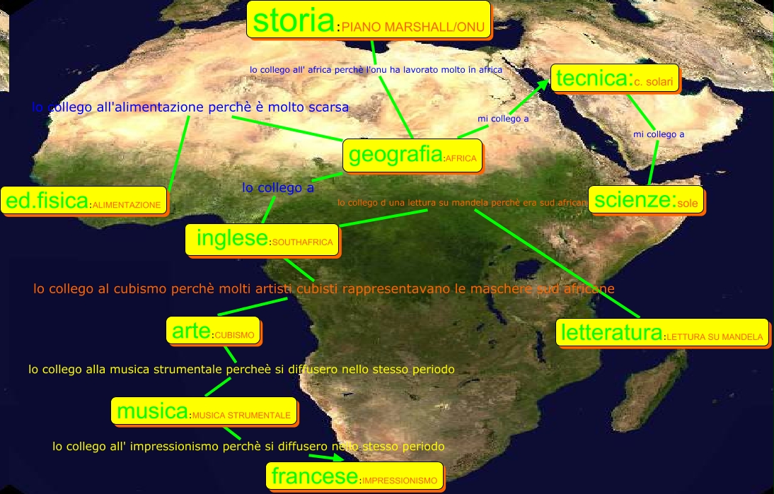 Questa Cmap, creata con IHMC CmapTools, contiene informazioni relative a: perfetto luigi.cmap, inglese:SOUTHAFRICA lo collego d una lettura su mandela perchè era sud africano letteratura:LETTURA SU MANDELA, geografia:AFRICA lo collego all'alimentazione perchè è molto scarsa ed.fisica:ALIMENTAZIONE, tecnica:c. solari mi collego a scienze:sole, geografia:AFRICA mi collego a tecnica:c. solari, arte:CUBISMO lo collego alla musica strumentale percheè si diffusero nello stesso periodo musica:MUSICA STRUMENTALE, musica:MUSICA STRUMENTALE lo collego all' impressionismo perchè si diffusero nello stesso periodo francese:IMPRESSIONISMO, geografia:AFRICA lo collego a inglese:SOUTHAFRICA, inglese:SOUTHAFRICA lo collego al cubismo perchè molti artisti cubisti rappresentavano le maschere sud africane arte:CUBISMO, storia:PIANO MARSHALL/ONU lo collego all' africa perchè l'onu ha lavorato molto in africa geografia:AFRICA
