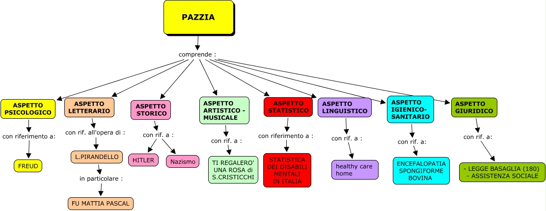 Questa Cmap, creata con IHMC CmapTools, contiene informazioni relative a: PAZZIA1-tesina Ceraso - 5Bdir 2011-corretta, ASPETTO PSICOLOGICO con riferimento a: FREUD, PAZZIA comprende : ASPETTO STATISTICO, PAZZIA comprende : ASPETTO STORICO, PAZZIA comprende : ASPETTO LETTERARIO, PAZZIA comprende : ASPETTO LINGUISTICO, ASPETTO ARTISTICO - MUSICALE con rif. a : TI REGALERO' UNA ROSA di S.CRISTICCHI, L.PIRANDELLO in particolare : FU MATTIA PASCAL, ASPETTO IGIENICO- SANITARIO con rif. a: ENCEFALOPATIA SPONGIFORME BOVINA, PAZZIA comprende : ASPETTO PSICOLOGICO, ASPETTO LETTERARIO con rif. all'opera di : L.PIRANDELLO, ASPETTO STORICO con rif. a : Nazismo, ASPETTO STORICO con rif. a : HITLER, ASPETTO LINGUISTICO con rif. a : healthy care home, ASPETTO STATISTICO con riferimento a : STATISTICA DEI DISABILI MENTALI IN ITALIA, PAZZIA comprende : ASPETTO GIURIDICO, PAZZIA comprende : ASPETTO ARTISTICO - MUSICALE, PAZZIA comprende : ASPETTO IGIENICO- SANITARIO, ASPETTO GIURIDICO con rif. a: - LEGGE BASAGLIA (180) - ASSISTENZA SOCIALE