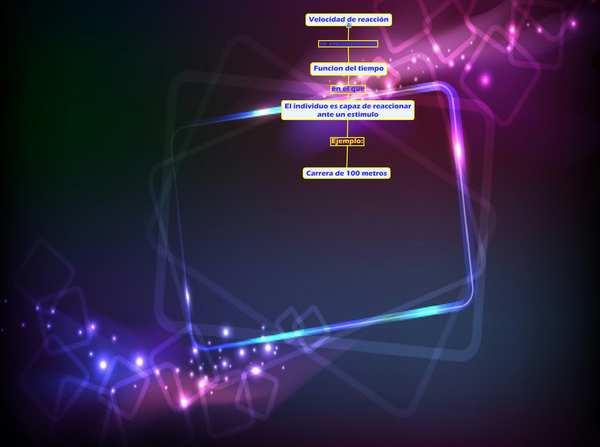 Este Cmap, tiene información relacionada con: Velocidad de reaccion, El individuo es capaz de reaccionar ante un estimulo Ejemplo: Carrera de 100 metros, Velocidad de reacción se encuentra en Funcion del tiempo, Funcion del tiempo en el que El individuo es capaz de reaccionar ante un estimulo