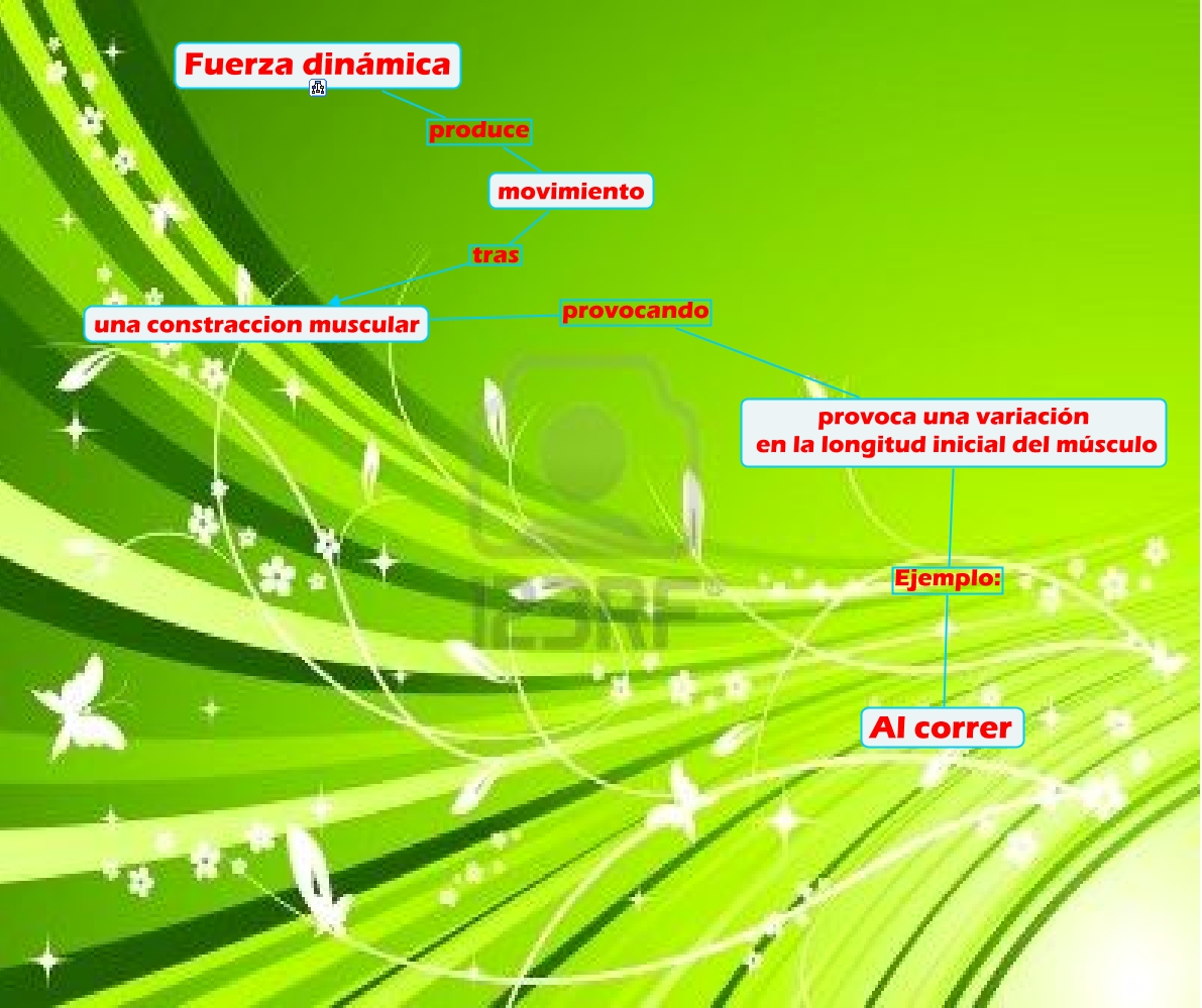 Este Cmap, tiene información relacionada con: Fuerza dinámica, provoca una variación en la longitud inicial del músculo Ejemplo: Al correr, una constraccion muscular provocando provoca una variación en la longitud inicial del músculo, Fuerza dinámica produce movimiento, movimiento tras una constraccion muscular