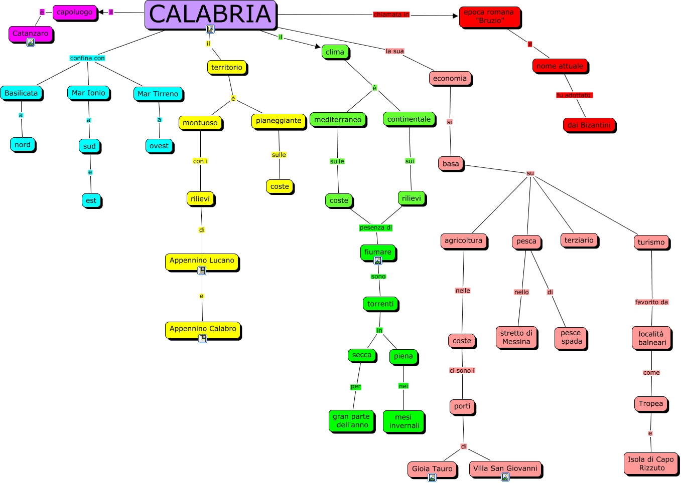 Questa Cmap, creata con IHMC CmapTools, contiene informazioni relative a: Calabria_Airoldi, pesca di pesce spada, Mar Tirreno a ovest, montuoso con i rilievi, sud e est, torrenti in piena, clima è mediterraneo, Mar Ionio a sud, CALABRIA chiamata in epoca romana "Bruzio", CALABRIA confina con Basilicata, secca per gran parte dell'anno, nome attuale fu adottato dai Bizantini, basa su terziario, CALABRIA il territorio, territorio è pianeggiante, basa su turismo, fiumare sono torrenti, località balneari come Tropea, coste pesenza di fiumare, CALABRIA confina con Mar Ionio, basa su pesca