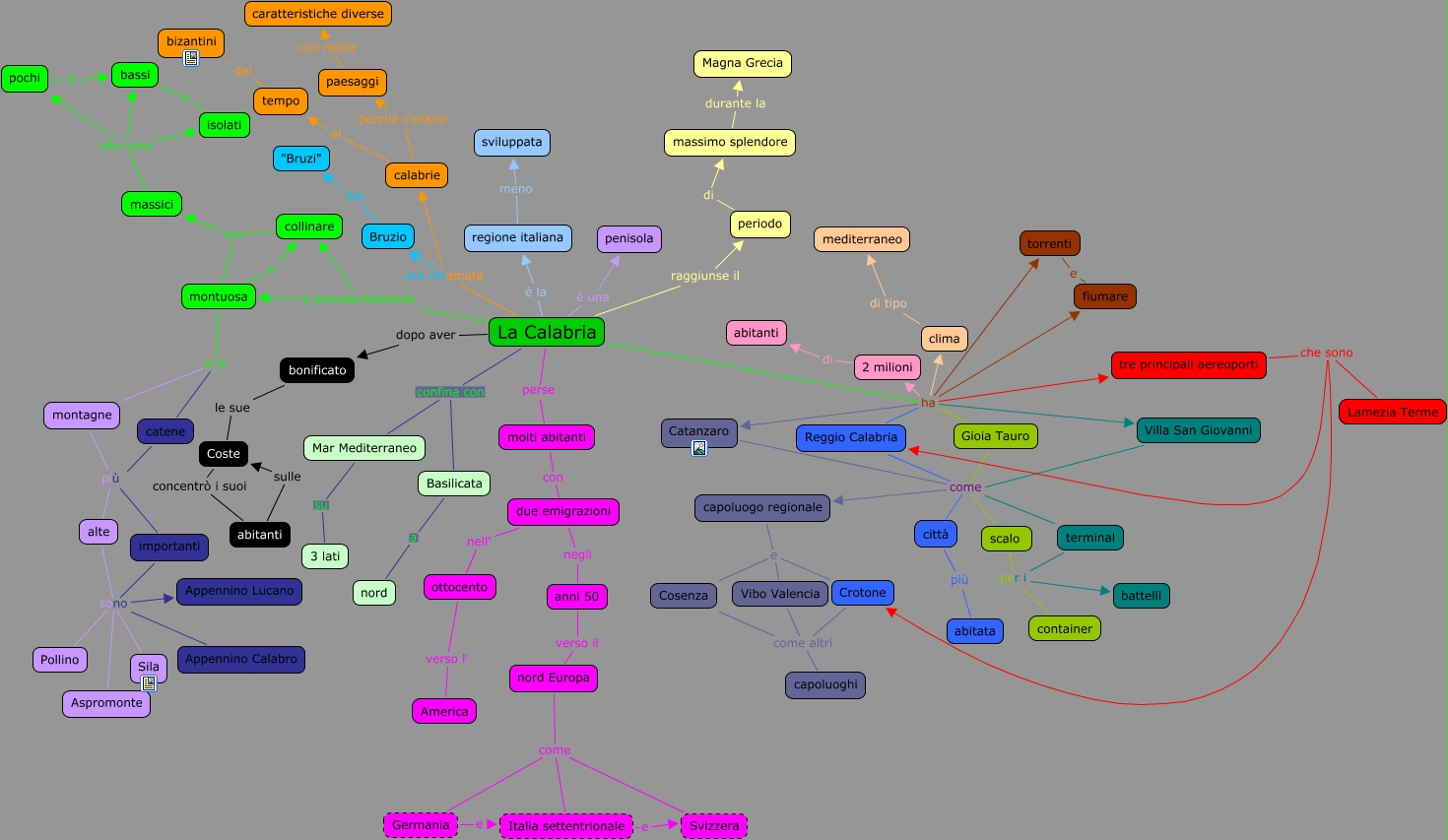 Questa Cmap, creata con IHMC CmapTools, contiene informazioni relative a: Calabria_Nasta, Gioia Tauro come capoluogo regionale, La Calabria era chiamata Bruzio, La Calabria ha fiumare, Gioia Tauro come terminal, importanti sono Appennino Calabro, Vibo Valencia come altri capoluoghi, La Calabria è prevalentemente montuosa, capoluogo regionale e Cosenza, anni 50 verso il nord Europa, tre principali aereoporti che sono Reggio Calabria, Germania e Italia settentrionale, montuosa e le catene, due emigrazioni negli anni 50, La Calabria ha Villa San Giovanni, Coste concentrò i suoi abitanti, La Calabria dopo aver bonificato, tre principali aereoporti che sono Lamezia Terme, montuosa con massici, La Calabria è prevalentemente collinare, tempo dei bizantini