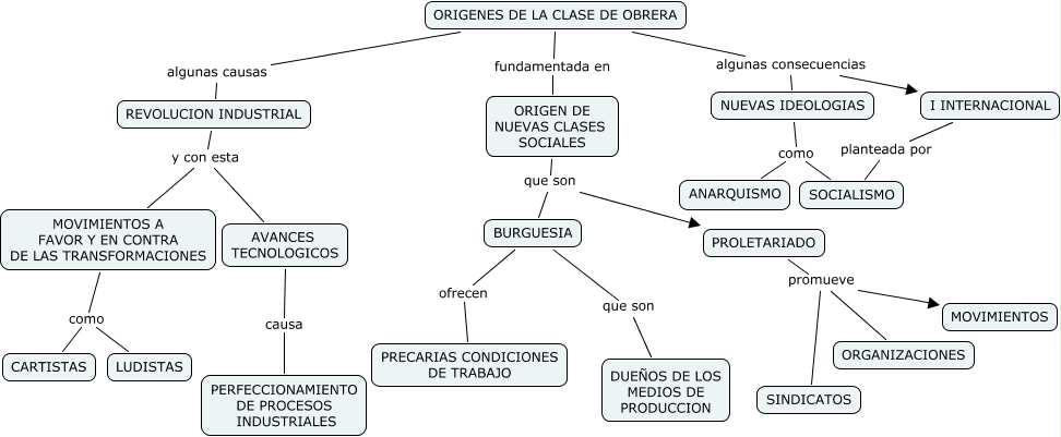Este Cmap, tiene información relacionada con: Origenes de la clase obrera en Europa, BURGUESIA que son DUEÑOS DE LOS MEDIOS DE PRODUCCION, AVANCES TECNOLOGICOS causa PERFECCIONAMIENTO DE PROCESOS INDUSTRIALES, ORIGEN DE NUEVAS CLASES SOCIALES que son PROLETARIADO, MOVIMIENTOS A FAVOR Y EN CONTRA DE LAS TRANSFORMACIONES como CARTISTAS, NUEVAS IDEOLOGIAS como ANARQUISMO, PROLETARIADO promueve ORGANIZACIONES, ORIGENES DE LA CLASE DE OBRERA fundamentada en ORIGEN DE NUEVAS CLASES SOCIALES, PROLETARIADO promueve SINDICATOS, ORIGEN DE NUEVAS CLASES SOCIALES que son BURGUESIA, REVOLUCION INDUSTRIAL y con esta MOVIMIENTOS A FAVOR Y EN CONTRA DE LAS TRANSFORMACIONES, I INTERNACIONAL planteada por SOCIALISMO, ORIGENES DE LA CLASE DE OBRERA algunas consecuencias I INTERNACIONAL, NUEVAS IDEOLOGIAS como SOCIALISMO, ORIGENES DE LA CLASE DE OBRERA algunas causas REVOLUCION INDUSTRIAL, PROLETARIADO promueve MOVIMIENTOS, REVOLUCION INDUSTRIAL y con esta AVANCES TECNOLOGICOS, ORIGENES DE LA CLASE DE OBRERA algunas consecuencias NUEVAS IDEOLOGIAS, MOVIMIENTOS A FAVOR Y EN CONTRA DE LAS TRANSFORMACIONES como LUDISTAS, BURGUESIA ofrecen PRECARIAS CONDICIONES DE TRABAJO