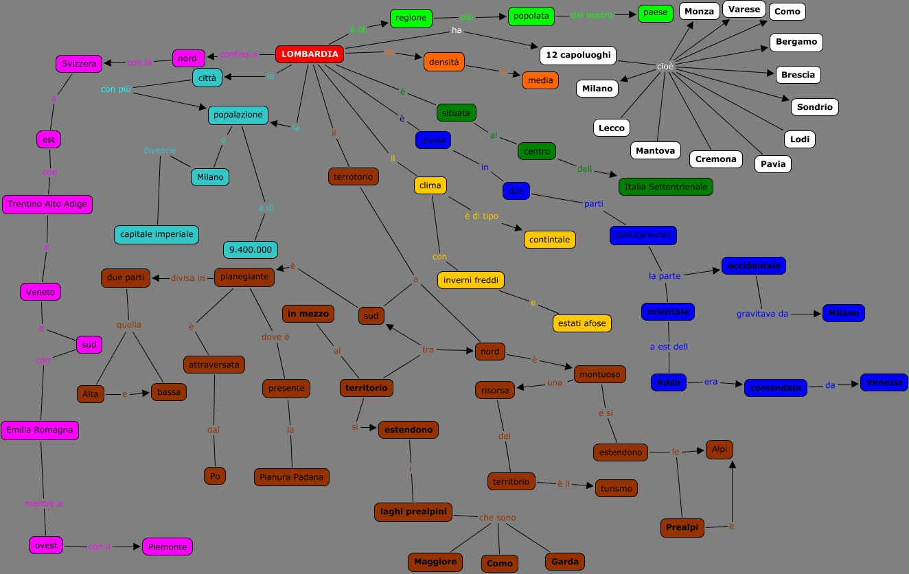 Questa Cmap, creata con IHMC CmapTools, contiene informazioni relative a: Lombardia_Marzolo, estendono i laghi prealpini, 12 capoluoghi cioè Pavia, in mezzo al territorio, 12 capoluoghi cioè Bergamo, clima è di tipo contintale, orientale a est dell Adda, sud è pianegiante, 12 capoluoghi cioè Sondrio, territorio si estendono, 12 capoluoghi cioè Cremona, divisa in due, comandata da Venezia, LOMBARDIA il terrotorio, popalazione è di 9.400.000, Svizzera a est, pianegiante dove è presente, clima con inverni freddi, politicamente la parte orientale, territorio tra sud, LOMBARDIA è situata
