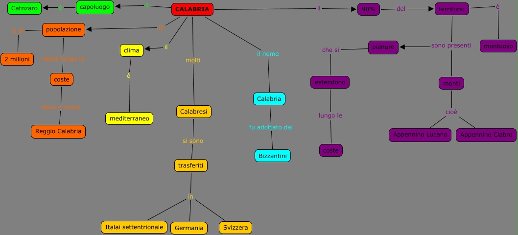 Questa Cmap, creata con IHMC CmapTools, contiene informazioni relative a: Calabria_Marzolo, trasferiti in Svizzera, capoluogo è Catnzaro, CALABRIA la popolazione, Calabresi si sono trasferiti, CALABRIA il nome Calabria, CALABRIA molti Calabresi, pianure che si estendono, popolazione risiedi lungo le coste, CALABRIA il capoluogo, CALABRIA il 90%, territorio sono presenti pianure, territorio è montuoso, estendono lungo le coste, Calabria fu adottato dai Bizzantini, coste dove si trova Reggio Calabria, CALABRIA il clima, trasferiti in Germania, 90% del territorio, clima è mediterraneo, territorio sono presenti monti