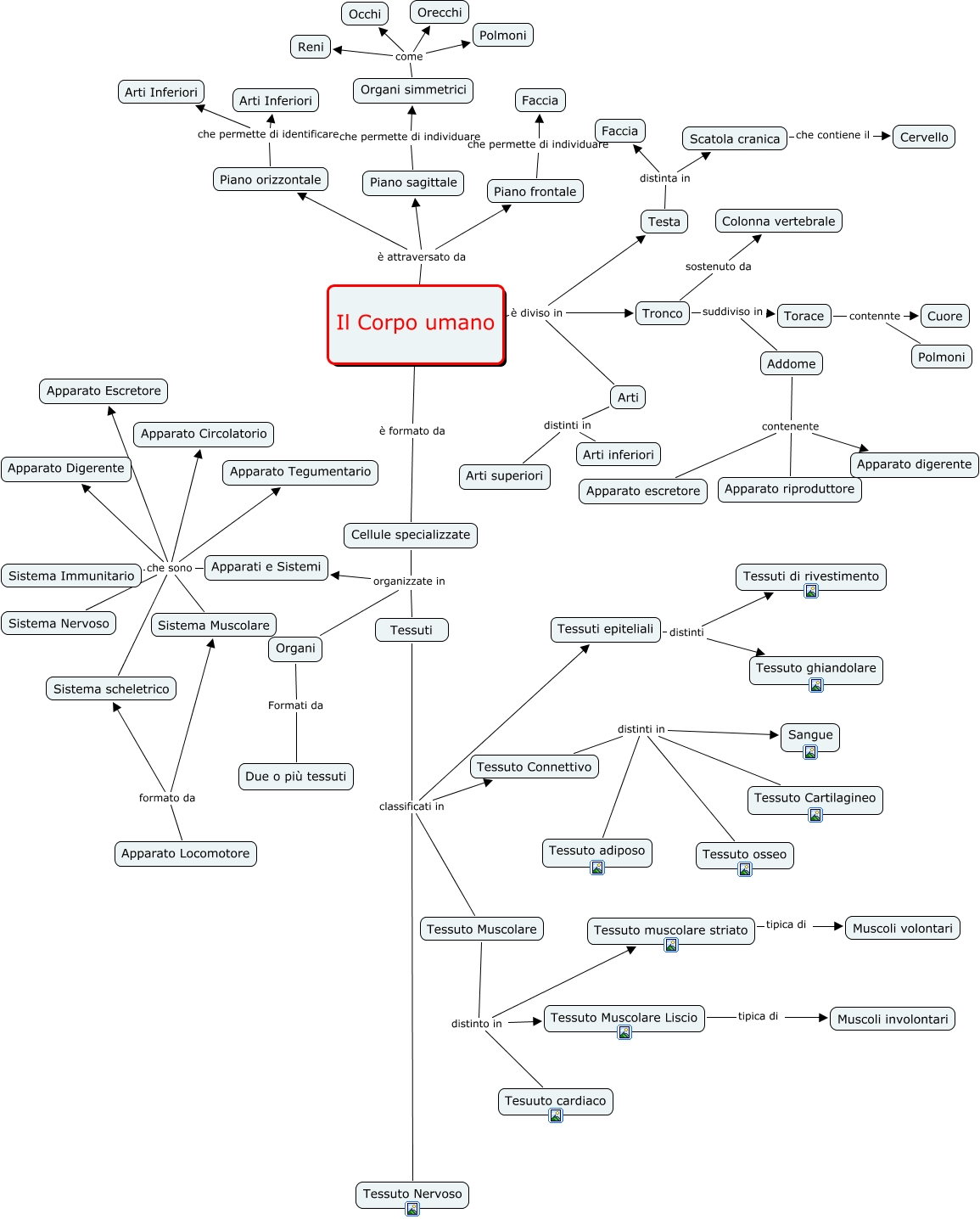 Questa Cmap, creata con IHMC CmapTools, contiene informazioni relative a: Il Corpo umano + foto.cmap, Testa distinta in Scatola cranica, Testa distinta in Faccia, Tessuto Connettivo distinti in Tessuto adiposo, Cellule specializzate organizzate in Apparati e Sistemi, Apparati e Sistemi che sono Sistema Muscolare, Torace contennte Polmoni, Tessuto Connettivo distinti in Sangue, Torace contennte Cuore, Il Corpo umano è diviso in Tronco, Piano orizzontale che permette di identificare Arti Inferiori, Tessuti classificati in Tessuti epiteliali, Tessuto Connettivo distinti in Tessuto osseo, Il Corpo umano è attraversato da Piano sagittale, Il Corpo umano è formato da Cellule specializzate, Arti distinti in Arti superiori, Tessuto Muscolare Liscio tipica di Muscoli involontari, Apparati e Sistemi che sono Sistema scheletrico, Tessuti epiteliali distinti Tessuti di rivestimento, Apparati e Sistemi che sono Apparato Escretore, Apparati e Sistemi che sono Apparato Tegumentario