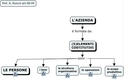 Questa Cmap, creata con IHMC CmapTools, contiene informazioni relative a: Azienda-elementi costitutivi - Mappa base-G.Ruocco, (5)ELEMENTI COSTITUTIVI sono : le operazioni, (5)ELEMENTI COSTITUTIVI sono : lo scopo produttivo, (5)ELEMENTI COSTITUTIVI sono : LE PERSONE, (5)ELEMENTI COSTITUTIVI sono : i beni, (5)ELEMENTI COSTITUTIVI sono : la struttura organizzativa, L'AZIENDA è formata da: (5)ELEMENTI COSTITUTIVI