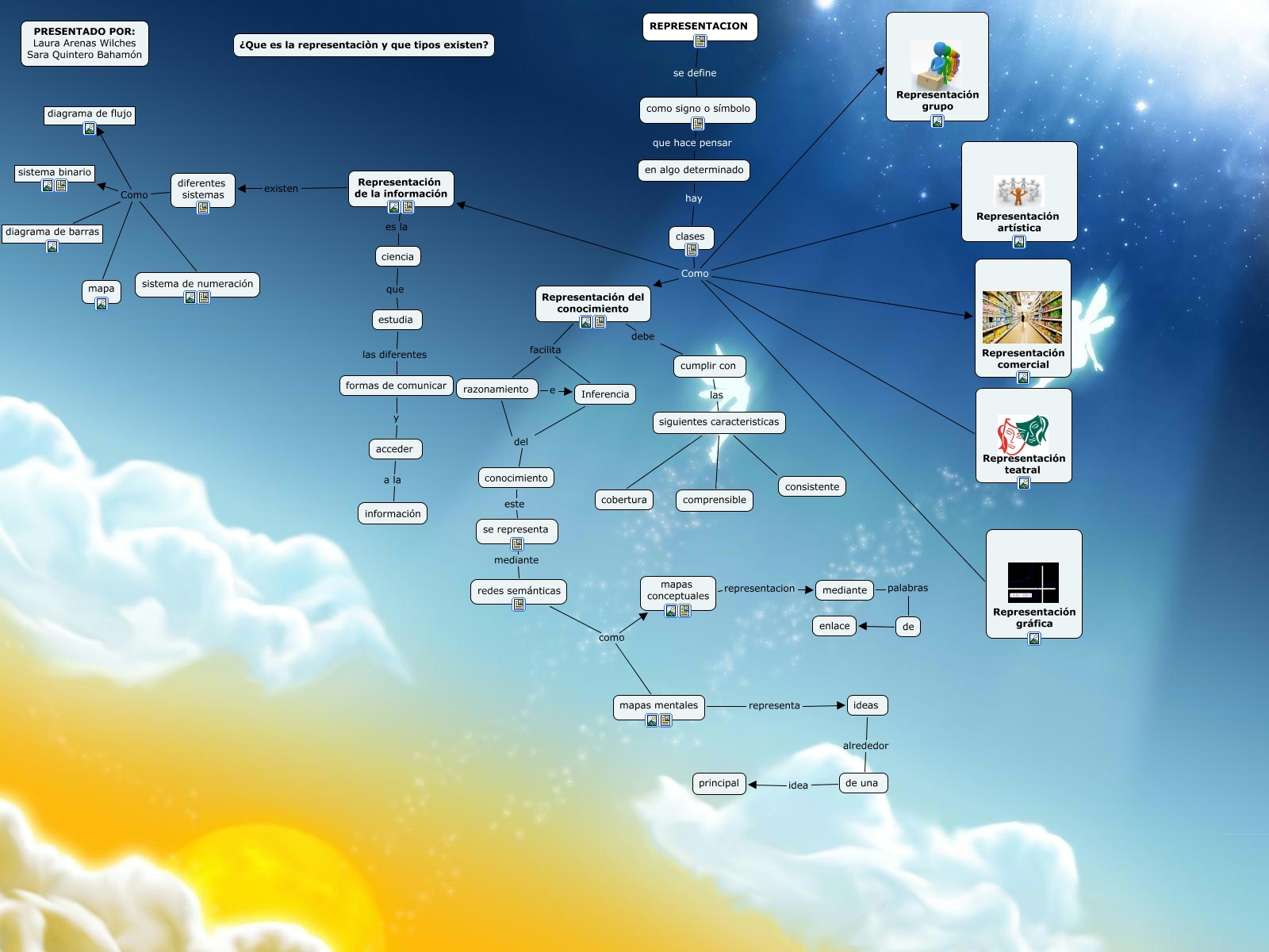 Este Cmap, tiene información relacionada con: REPRESENTACIÓN, clases Como Representación gráfica, diferentes sistemas Como diagrama de barras, Representación del conocimiento debe cumplir con, clases Como Representación artística, razonamiento del conocimiento, mapas conceptuales representacion mediante, de enlace, se representa mediante redes semánticas, Representación del conocimiento facilita Inferencia, diferentes sistemas Como diagrama de flujo, redes semánticas como mapas mentales, diferentes sistemas Como mapa, acceder a la información, en algo determinado hay clases, como signo o símbolo que hace pensar en algo determinado, mapas mentales representa ideas, Inferencia del conocimiento, diferentes sistemas Como sistema binario, diferentes sistemas Como sistema de numeración, ciencia que estudia