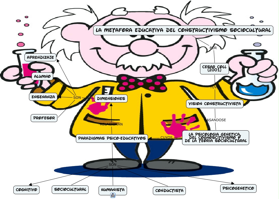 Este Cmap, tiene información relacionada con: CONSTRUCTIVISMO, DIMENSIONES SON ALUMNO, PARADIGMAS PSICO-EDUCATIVOS SON HUMANISTA, PARADIGMAS PSICO-EDUCATIVOS SON COGNITIVO, LA PSICOLOGIA GENETICA, DEL COGNOSCITIVISMO Y DE LA TEORIA SOCIOCULTURAL CUYOS PARADIGMAS PSICO-EDUCATIVOS, DIMENSIONES SON APRENDIZAJE, PARADIGMAS PSICO-EDUCATIVOS SON CONDUCTISTA, DIMENSIONES SON PROFESOR, VISION CONSTRUCTIVISTA BASANDOSE LA PSICOLOGIA GENETICA, DEL COGNOSCITIVISMO Y DE LA TEORIA SOCIOCULTURAL, PARADIGMAS PSICO-EDUCATIVOS SON PSICOGENETICO, LA METAFORA EDUCATIVA DEL CONSTRUCTIVISMO SOCIOCULTURAL POR CESAR COLL (2001), DIMENSIONES SON ENSEÑANZA, PARADIGMAS PSICO-EDUCATIVOS SON SOCIOCULTURAL, CESAR COLL (2001) TUVO VISION CONSTRUCTIVISTA, PARADIGMAS PSICO-EDUCATIVOS RELACIONAN DIMENSIONES