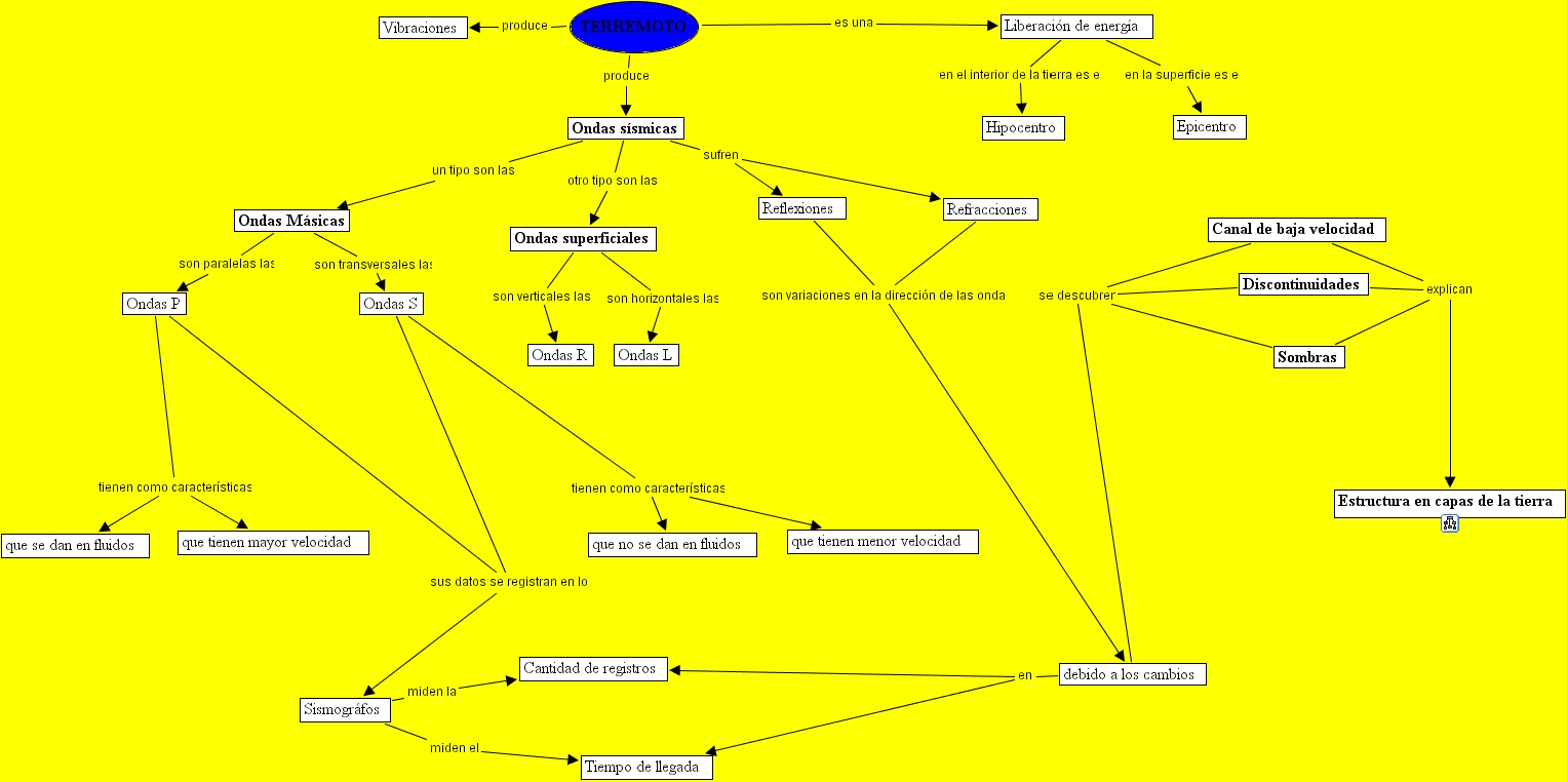 sismolog�a, ondas s�smicas, ondas superficiales, ondas p, que tienen mayor velocidad, epicentro, sombras, debido a los cambios, ondas m�sicas, vibraciones, ondas l, refracciones, cantidad de registros, estructura en capas de la tierra, hipocentro, que se dan en fluidos, tiempo de llegada, liberaci�n de energ�a, reflexiones, canal de baja velocidad, terremoto, que no se dan en fluidos, que tienen menor velocidad, discontinuidades, sismogr�fos, ondas s, ondas r