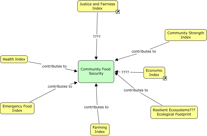 This Concept Map, created with IHMC CmapTools, has information related to: FoodMapCentral, Health Index contributes to Community Food Security, Farming Index contributes to Community Food Security, Economic Index ???? Community Food Security, Emergency Food Index contributes to Community Food Security, Justice and Fairness Index ???? Community Food Security, Community Strength Index contributes to Community Food Security, Resilient Ecosystems??? Ecological Footprint contributes to Community Food Security