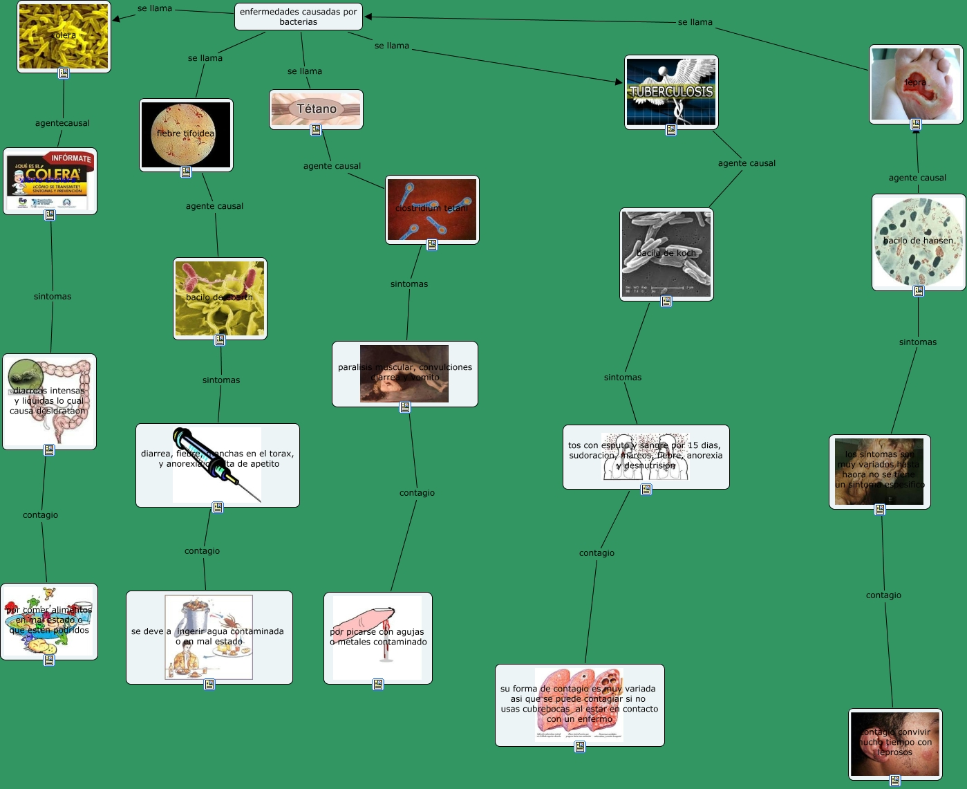 Este Cmap, tiene información relacionada con: enfermedades causadas por bacterias, agente causal clostridium tetani, fiebre tifoidea agente causal bacilo de eberth, enfermedades causadas por bacterias se llama fiebre tifoidea, agente causal bacilo de koch, los sintomas son muy variados hasta haora no se tiene un sintoma espesifico contagio contagio convivir mucho tiempo con leprosos, bacilo de hansen agente causal lepra, paralisis muscular, convulciones diarrea y vomito contagio por picarse con agujas o metales contaminado, tos con esputo y sangre por 15 dias, sudoracion, mareos, fiebre, anorexia y desnutrision contagio su forma de contagio es muy variada asi que se puede contagiar si no usas cubrebocas al estar en contacto con un enfermo, enfermedades causadas por bacterias se llama, diarreas intensas y liquidas lo cual causa desidrataon contagio por comer alimentos en mal estado o que esten podridos, bacilo de hansen sintomas los sintomas son muy variados hasta haora no se tiene un sintoma espesifico, enfermedades causadas por bacterias se llama, enfermedades causadas por bacterias se llama colera, vibrio cholerae sintomas diarreas intensas y liquidas lo cual causa desidrataon, bacilo de koch sintomas tos con esputo y sangre por 15 dias, sudoracion, mareos, fiebre, anorexia y desnutrision, diarrea, fiebre, manchas en el torax, y anorexia o falta de apetito contagio se deve a ingerir agua contaminada o en mal estado, colera agentecausal vibrio cholerae, clostridium tetani sintomas paralisis muscular, convulciones diarrea y vomito, lepra se llama enfermedades causadas por bacterias, bacilo de eberth sintomas diarrea, fiebre, manchas en el torax, y anorexia o falta de apetito