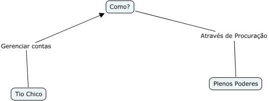 Esse mapa conceitual, produzido no IHMC CmapTools, tem a informação relacionada a: Tio Chico, Como? Através de Procuração Plenos Poderes, Tio Chico Gerenciar contas Como?