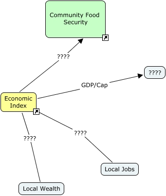 This Concept Map, created with IHMC CmapTools, has information related to: Economic Index, Economic Index ???? Community Food Security, Economic Index GDP/Cap ????, Economic Index ???? Local Jobs, Economic Index ???? Local Wealth