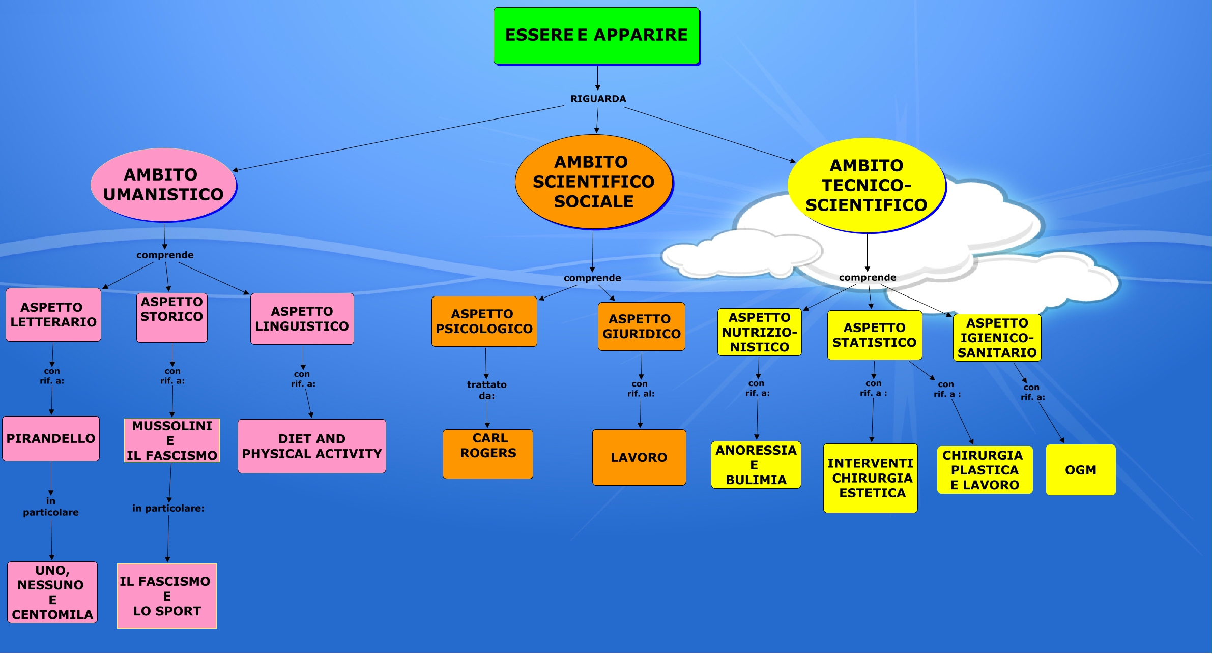 Questa Cmap, creata con IHMC CmapTools, contiene informazioni relative a: Essere e Apparire-tesina Daniela Putzu-5Bdir-2010-2011-(corretta), AMBITO SCIENTIFICO SOCIALE comprende ASPETTO PSICOLOGICO, AMBITO UMANISTICO comprende ASPETTO LINGUISTICO, AMBITO TECNICO- SCIENTIFICO comprende ASPETTO NUTRIZIO- NISTICO, PIRANDELLO in particolare UNO, NESSUNO E CENTOMILA, AMBITO SCIENTIFICO SOCIALE comprende ASPETTO GIURIDICO, ASPETTO GIURIDICO con rif. al: LAVORO, ESSERE E APPARIRE RIGUARDA AMBITO SCIENTIFICO SOCIALE, ESSERE E APPARIRE RIGUARDA AMBITO TECNICO- SCIENTIFICO, ASPETTO STATISTICO con rif. a : INTERVENTI CHIRURGIA ESTETICA, AMBITO TECNICO- SCIENTIFICO comprende ASPETTO IGIENICO- SANITARIO, ASPETTO LINGUISTICO con rif. a: DIET AND PHYSICAL ACTIVITY, AMBITO UMANISTICO comprende ASPETTO LETTERARIO, ASPETTO IGIENICO- SANITARIO con rif. a: OGM, ASPETTO PSICOLOGICO trattato da: CARL ROGERS, AMBITO UMANISTICO comprende ASPETTO STORICO, ASPETTO STORICO con rif. a: MUSSOLINI E IL FASCISMO, MUSSOLINI E IL FASCISMO in particolare: IL FASCISMO E LO SPORT, ASPETTO STATISTICO con rif. a : CHIRURGIA PLASTICA E LAVORO, ESSERE E APPARIRE RIGUARDA AMBITO UMANISTICO, AMBITO TECNICO- SCIENTIFICO comprende ASPETTO STATISTICO