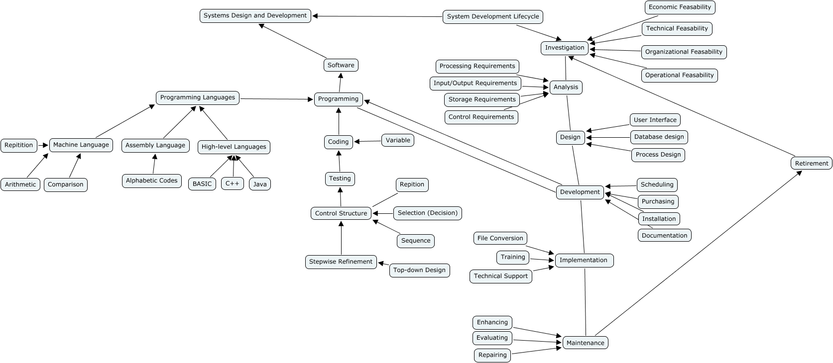 This Concept Map, created with IHMC CmapTools, has information related to: DAVIS, SCOTT, Training Implementation, Programming Languages Programming, Investigation Analysis, Enhancing Maintenance, File Conversion Implementation, Operational Feasability Investigation, Implementation Maintenance, Development Implementation, Scheduling Development, Installation Development, Machine Language Programming Languages, Repition Control Structure, Organizational Feasability Investigation, C++ High-level Languages, Alphabetic Codes Assembly Language, Purchasing Development, Coding Programming, Programming Software, User Interface Design, Processing Requirements Analysis