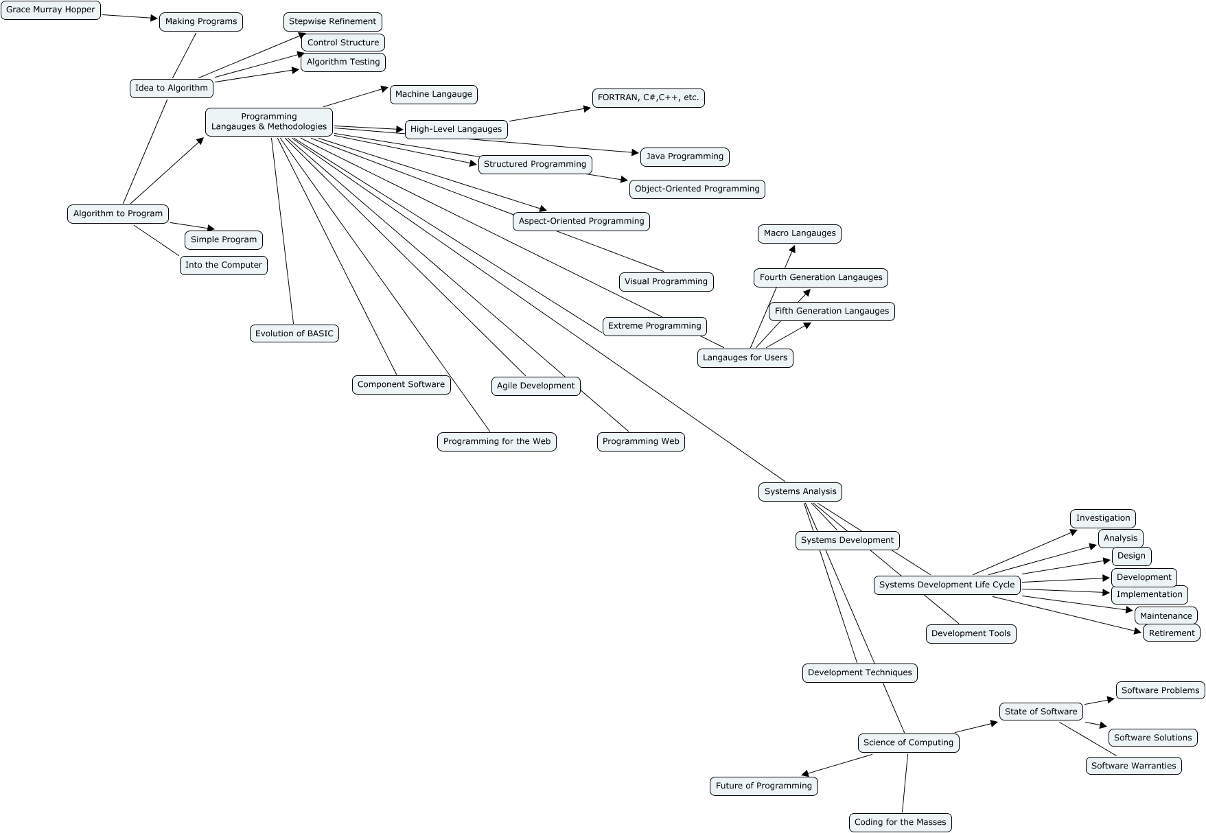 This Concept Map, created with IHMC CmapTools, has information related to: RIGG, TIMOTHY, Idea to Algorithm Control Structure, Idea to Algorithm Stepwise Refinement, Idea to Algorithm Algorithm to Program, Systems Analysis Science of Computing, Programming Langauges & Methodologies Agile Development, Algorithm to Program Simple Program, State of Software Software Problems, Science of Computing Coding for the Masses, Programming Langauges & Methodologies Programming Web, Systems Development Life Cycle Investigation, Programming Langauges & Methodologies Component Software, Science of Computing State of Software, Programming Langauges & Methodologies Machine Langauge, State of Software Software Solutions, Programming Langauges & Methodologies Java Programming, Programming Langauges & Methodologies Object-Oriented Programming, Programming Langauges & Methodologies Visual Programming, Programming Langauges & Methodologies Systems Analysis, Systems Development Life Cycle Retirement, Programming Langauges & Methodologies Programming for the Web