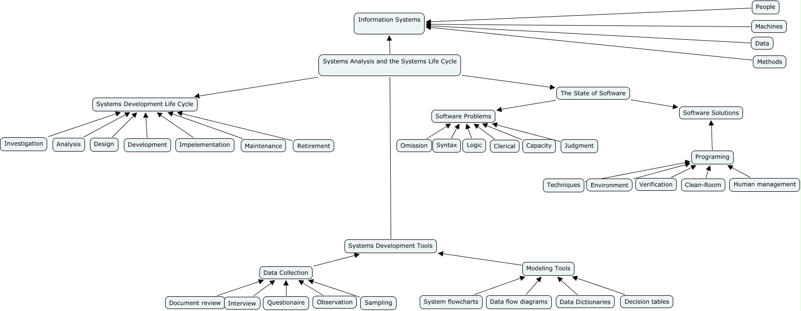 This Concept Map, created with IHMC CmapTools, has information related to: LAPIDES, COLLIN, Human management Programing, Decision tables Modeling Tools, Capacity Software Problems, Systems Analysis and the Systems Life Cycle Systems Development Life Cycle, Clean-Room Programing, The State of Software Software Problems, Data Collection Systems Development Tools, Methods Information Systems, The State of Software Software Solutions, Observation Data Collection, Judgment Software Problems, Programing Software Solutions, Data Dictionaries Modeling Tools, Questionaire Data Collection, Techniques Programing, Environment Programing, Investigation Systems Development Life Cycle, Machines Information Systems, Modeling Tools Systems Development Tools, People Information Systems