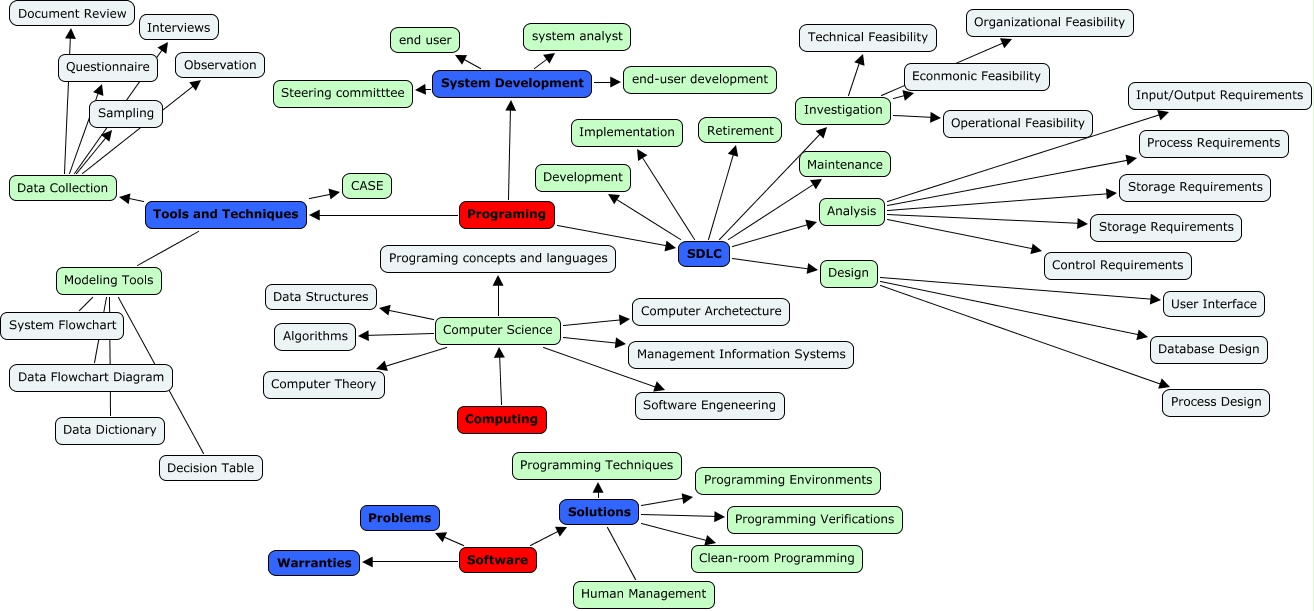 This Concept Map, created with IHMC CmapTools, has information related to: JORGENSEN, JILL, Tools and Techniques Modeling Tools, Modeling Tools System Flowchart, Analysis Control Requirements, Analysis Input/Output Requirements, SDLC Investigation, Data Collection Sampling, Solutions Human Management, Programing Tools and Techniques, Software Solutions, Computer Science Algorithms, Computer Science Programing concepts and languages, Analysis Storage Requirements, System Development system analyst, System Development end user, System Development Steering committtee, Modeling Tools Data Dictionary, SDLC Development, Solutions Programming Verifications, Data Collection Questionnaire, Software Problems