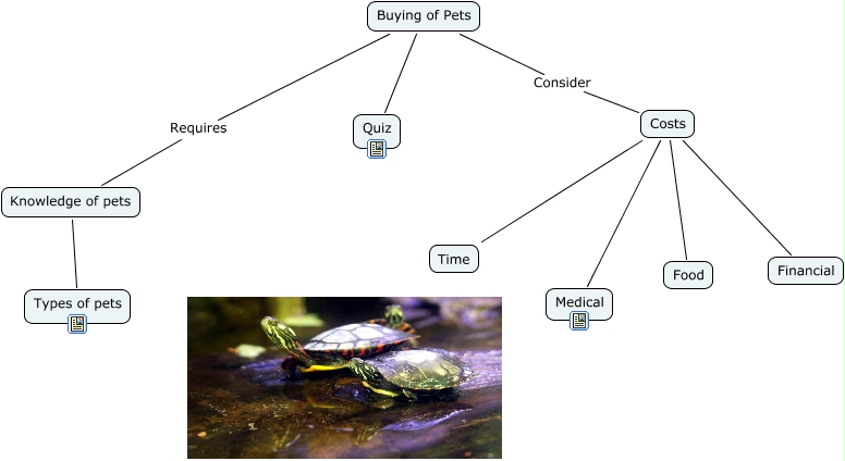 This Concept Map, created with IHMC CmapTools, has information related to: Pets, Costs Financial, Buying of Pets Requires Knowledge of pets, Costs Medical, Knowledge of pets Types of pets, Buying of Pets Quiz, Buying of Pets Consider Costs, Costs Food, Costs Time