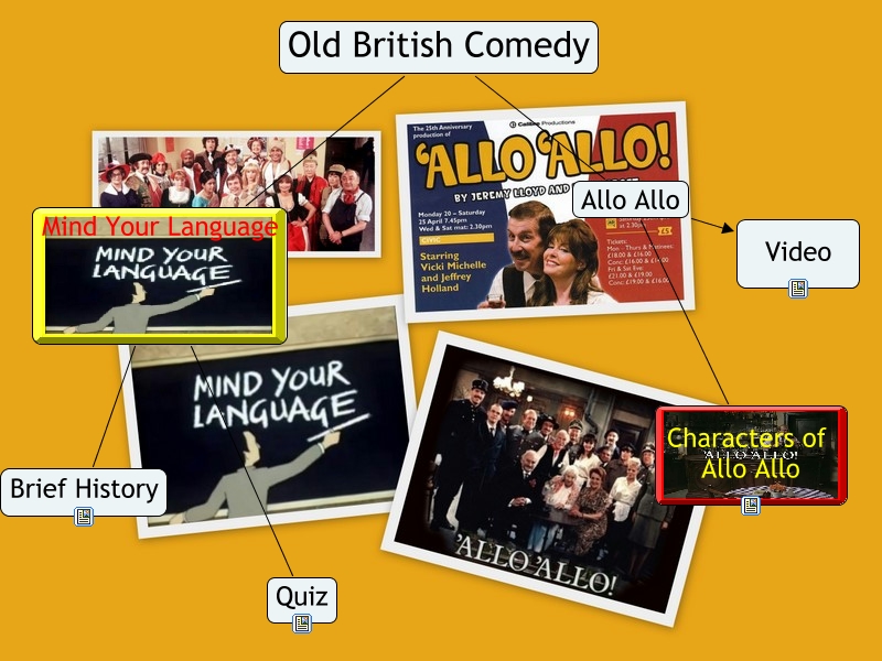 This Concept Map, created with IHMC CmapTools, has information related to: Old British Comedy, Old British Comedy Allo Allo, Allo Allo Characters of Allo Allo, Mind Your Language Quiz, Mind Your Language Brief History, Old British Comedy Mind Your Language, Allo Allo Video