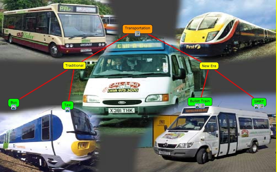 此概念图以 IHMC CmapTools 创建, 内�?�信�?�有关于: Accredition Exercise, Traditional Bus, New Era Bullet Train, New Era SMRT, Transportation New Era, Transportation Traditional, Traditional Taxi