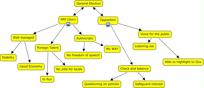 This Concept Map, created with IHMC CmapTools, has information related to: my CmaP, Foreign Talent In flux, General Election Opposition, Check and balance Safeguard interest, Voice for the public Listening ear, PAP (Gov) Authocratic, Foreign Talent No jobs for locals, Well managed Good Economy, Well managed Stability, Authocratic My WAY, General Election PAP (Gov), PAP (Gov) Foreign Talent, Authocratic No freedom of speech, Check and balance Questioning on policies, Opposition Check and balance, PAP (Gov) Well managed, Voice for the public Able to highllight to Gov, Opposition Voice for the public