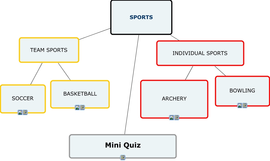 This Concept Map, created with IHMC CmapTools, has information related to: sports, TEAM SPORTS SOCCER, SPORTS TEAM SPORTS, SPORTS Mini Quiz, INDIVIDUAL SPORTS ARCHERY, TEAM SPORTS BASKETBALL, INDIVIDUAL SPORTS BOWLING, SPORTS INDIVIDUAL SPORTS